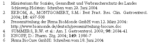 ebenso wie eine auf einem Kongress präsentierte unveröffentlichte offene Studie mit 29 Morbus-CROHN-Patienten5 wegen fehlender Kontrollen