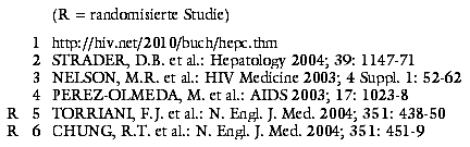 wöchentlich Interferon alfa 2a (zwölf Wochen jeweils 6 Mio. Einheiten, danach 3 Mio. Einheiten) plus Ribavirin. Auch in dieser Studie führt die