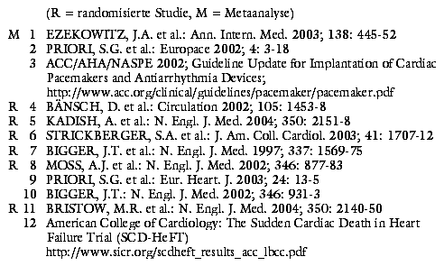 Die Frage einer Ausweitung der Indikation zur präventiven ICD-Therapie lässt sich aufgrund der Methodik oder der Ergebnisse der bislang dazu vorliegenden Studien - in denen die medikamentöse Therapie zum Teil unzureichend ist oder Patienten, die nachweislich profitieren, nicht ausgeschlossen wurden - bisher nicht klar beantworten.