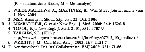 In Presseverlautbarungen, Artikeln medizinischer Fachzeitschriften und auf Symposien wird hartnäckig die Botschaft verbreitet, dass nicht Rofecoxib kardiotoxisch, sondern Naproxen, das Vergleichs-NSAR in VIGOR, kardioprotektiv sei.4 Dies, obgleich offenbar auch firmenintern erkannt wurde,1 dass selbst unter der unbewiesenen Annahme einer dem ASS vergleichbaren thrombozytenaggregationshemmenden Wirksamkeit von Naproxen die Differenz zu Rofecoxib - Verfünffachung des Herzinfarktrisikos, Verdoppelung von kardiovaskulären Ereignissen insgesamt5 - nicht erklärbar ist.6 ASS und andere Thrombozytenaggregationshemmer senken das Herzinfarktrisiko lediglich um ein Drittel, schwere Gefäßkomplikationen insgesamt um ein Viertel.7 Dennoch und trotz Verbots entsprechender Werbeaussagen durch die FDA (a-t 2001; 32: 102-3) hält die Firma bis August 2004 an dieser Anfang 2000 entwickelten Argumentation fest. Nach dem vorzeitigen Stopp der APPROVe-Studie bricht diese Sprachregelung endgültig ein, da Herzinfarkte und Schlaganfälle unter Rofecoxib hier häufiger sind als unter Plazebo. Mit Veröffentlichung der firmeninternen Diskussion im Wall Street Journal erweist sie sich jetzt als gezielte und systematische Desinformation.