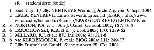 WIRKSAMKEIT: Vier zulassungsrelevante plazebokontrollierte Studien über drei Monate, davon eine zur Dosisfindung, erfassen knapp 2.200 Patientinnen mit alleinigen oder vorherrschenden Symptomen einer Stressinkontinenz.3-6 Drei der Studien sind identisch konzipiert und werden in weiten Passagen mit gleichem Wortlaut veröffentlicht.4-6 Als Erfolgskriterien dienen die Reduktion wöchentlicher Inkontinenz-Ereignisse (IEF: Incontinence Episode Frequency) und die Verbesserung in einem krankheitsspezifischen Fragebogen (Incontinence quality of life). Die in Tagebüchern erfasste Anzahl der Inkontinenz-Ereignisse verringert sich bei gepoolter Auswertung von 17 pro Woche in den Duloxetin-Gruppen um durchschnittlich 8,8, unter Plazebo um 5,6. In den einzelnen Studien liegt der Vorteil gegenüber Plazebo bei 1,5 bis 3,9 pro Woche.2 Selbst dieser geringe therapeutische Gewinn erscheint jedoch geschönt: Da viele Frauen die Behandlung mit Duloxetin wegen Nutzlosigkeit oder Störwirkungen frühzeitig absetzen und ihre Beschwerden nicht dokumentieren, werden 15% der Verumanwenderinnen nicht in die Auswertung einbezogen. Dies kann eine Verzerrung der Ergebnisse zu Gunsten von Duloxetin bewirken. Da Patientinnen mit mehr als 13 Inkontinenzereignissen pro Woche verhältnismäßig mehr zu profitieren scheinen, ist die Zulassung auf diese, als mittelschwer bis schwer definierten Krankheitsbilder beschränkt.
