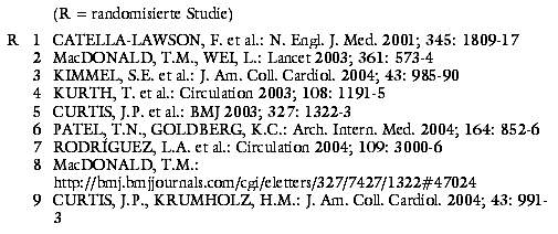 der Komedikation von ASS mit NSAR und insbesondere mit Ibuprofen untersucht werden.2-7 Die Ergebnisse sind widersprüchlich. Die im Leserbrief