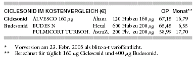 nachvollziehbar belegt. Wir sehen nach derzeitigem Kenntnisstand keine Vorteile für Ciclesonid.