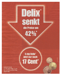 Bauernfängerei - DELIX für 17 Cent: "DELIX senkt die Preise um 42% - 5 mg DELIX jetzt nur noch 17 Cent" wirbt Sanofi