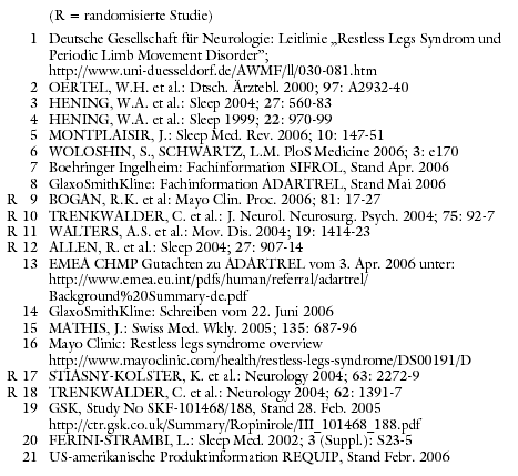 Niereninsuffizienz verursachtem RLS zugelassen. Die Nutzendokumentation ist unseres Erachtens allerdings nach wie vor unzureichend. Es fehlen insbesondere