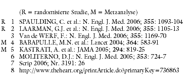 12,8%; p = 0,12). Infarkte, kardiale Todesfälle und Gesamtmortalität unterscheiden sich in beiden Studien nicht signifikant voneinander. Die gefürchteten