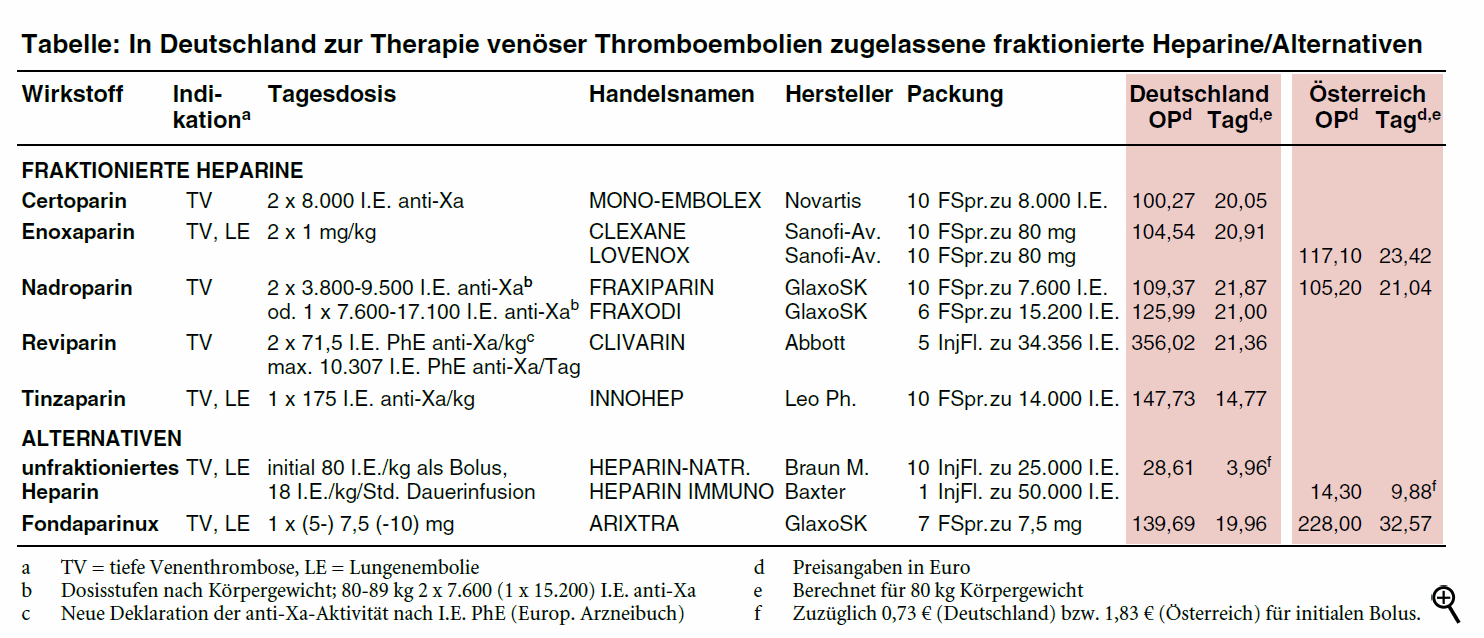 Die hierzulande für die Indikation zugelassenen fraktionierten Heparine unterscheiden sich untereinander weder hinsichtlich Wirksamkeit noch in der Sicherheit.