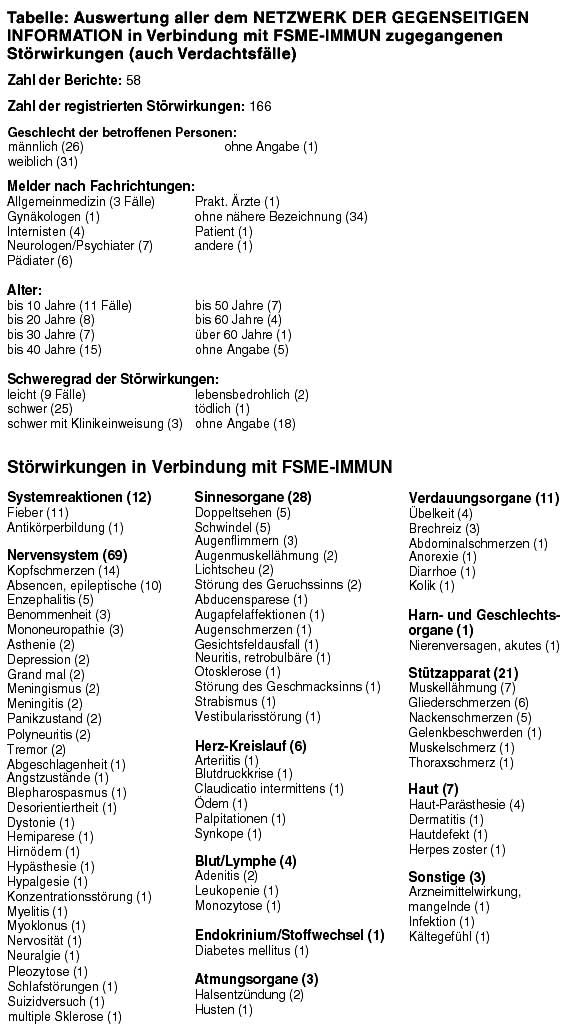 KOMPLIKATIONEN NACH FSME-IMPFUNG (FSME-IMMUN) |