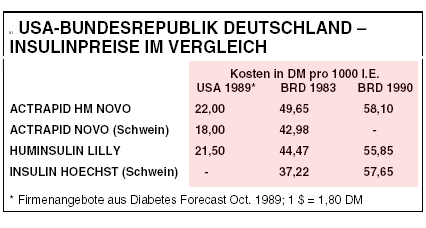 Mehrkosten von rund 300 Millionen DM. Das Kostengefälle gilt auch für Kanülen, z.B. für NOVOPEN: in den USA 0,18 DM/Stück, bei uns