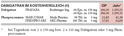 ∎  Auch unter Berücksichtigung des Wegfalls der INR-Messungen verteuert Dabigatran die Behandlung von nichtvalvulärem Vorhofflimmern erheblich.