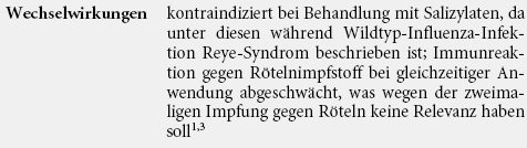 WIRKSAMKEIT: Eine auf individuellen Patientendaten beruhende, vom Hersteller gesponserte Metaanalyse, die nur Kinder ab einem Alter von zwei Jahren und Jugendliche berücksichtigt, errechnet, dass die Vakzine Influenzaerkrankungen gegenüber Plazebo innerhalb einer Saison relativ um 79% (95% Konfidenzintervall [CI] 73-83) reduziert (absolut 4% vs. 18%; 4.288 Kinder zwischen zwei und fünf Jahren und ohne Vorerkrankungen aus fünf Studien4-8).9