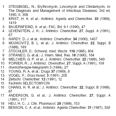 weitgehend dem des Erythromycins, ebenso die in vitro bestimmten minimalen Hemmkonzentrationen.3,19 Nach einer firmeneigenen Untersuchung besitzt