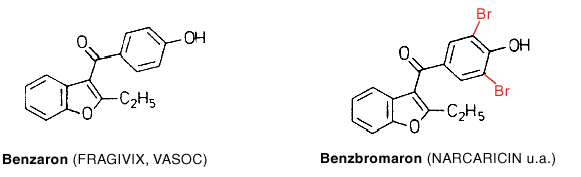 Immunallergische Reaktionen mit Hepatitis sind unter Benzaron bekannt. Eine mögliche Benzaron-Hepatitis mit tödlichem Ausgang nimmt nun die Sanol GmbH zum Anlaß, das Mittel "nach sorgfältiger Nutzen-Risiko-Abwägung" einschließlich der Creme-Zubereitung vom Markt zu nehmen, ebenso die Lindopharm GmbH das wirkstoffgleiche VASOC (Pharm. Ztg. 137 [1992], 3334). Leberschäden sind in Verbindung mit dem die Harnsäureausscheidung fördernden Benzbromaron (NARCARICIN u.a.), einer Strukturvariante des Benzaron mit zwei Bromsubstituenten (vgl. Abb.), nicht bekannt. Auf eine potentielle Hepatotoxizität des Urikosurikums ist zu achten, –Red.