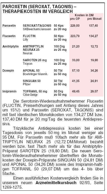 SEROTONIN-WIEDERAUFNAHMEHEMMER: PAROXETIN (SEROXAT, TAGONIS) |
