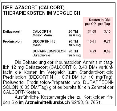 Antirheumatika unverträglich sind. Die Wirkung von 6 mg Deflazacort scheint in etwa der von 5 mg Prednison zu entsprechen. Die