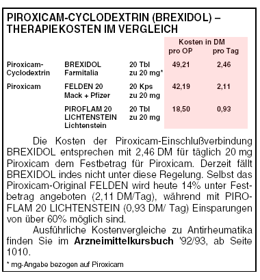 FAZIT: Das Antirheumatikum BREXIDOL enthält eine Piroxicam-Einschlußverbindung. Wir sehen jedoch keinen besonderen klinischen Vorteil