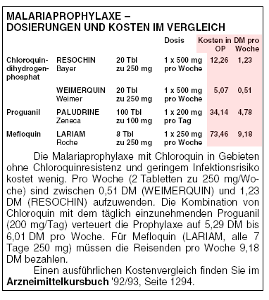 MALARIAPROPHYLAXE 1993 – BEKANNTES UND UNBEKANNTES