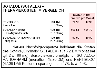 Das zunächst von einigen Generika-Anbietern etablierte Hochpreisniveau ließ sich nicht halten. SOTALOL-RATIOPHARM wurde Anfang 1993 noch