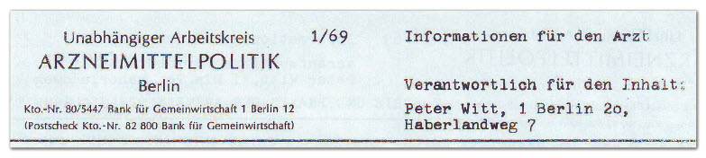 Die ersten Flugblätter erschienen 1969 unter den Pseudonymen Peter WITT und Emil STRESS, da die Reaktionen der Pharmaindustrie und ihrer