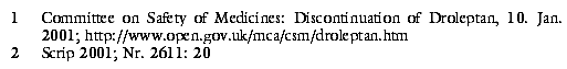 de pointes").1,2 Patienten sollen zügig von Droperidol auf eine alternative Therapie umgestellt werden, soweit es die Einnahme per os bei Manien