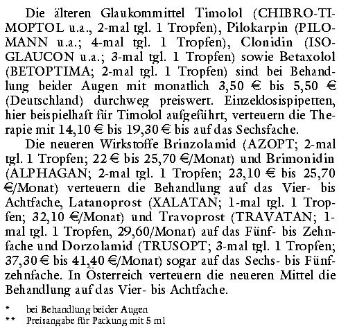 Hypotonie und Bradykardie einher. Ob das neuere, ebenfalls lipophile Brimonidin (ALPHAGAN; a-t 1998; Nr. 3: 30-