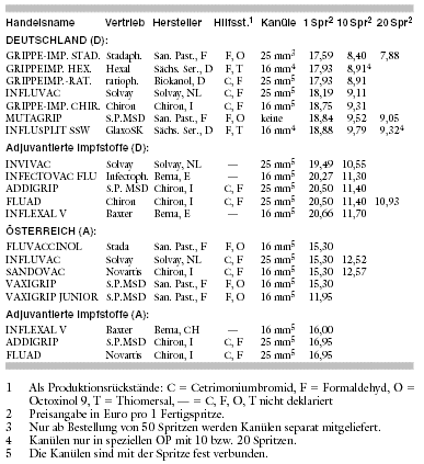 (Robert KOCH-Institut: Epid. Bull. 2003; Nr. 38: 305-7). Die konventionellen Spaltvirusimpfstoffe und die adjuvantierte Vakzine INFLEXAL V sind ab einem Alter von