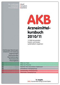 | 1977 | Erstes transparenz-telegramm und damit erstmals systematische Preisvergleiche für Arzneimittel. Kontinuierlich erweitert. 1992 umbenannt in Arzneimittelkursbuch (AKB), letzte Ausgabe 2010/11, seitdem nur noch digital (atd Arzneimitteldatenbank). |