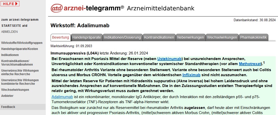 In der atd Arzneimitteldatenbank finden Sie systematisch bearbeitete Angaben zu mehr als 2.700 Wirkstoffen in über 18.000 Arzneimitteln. Die atd Arzneimitteldatenbank wird monatlich aktualisiert und ergänzt.